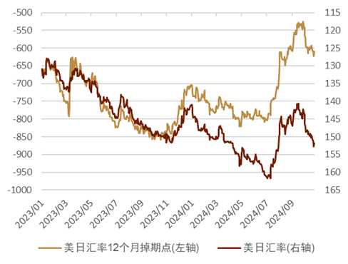 图表18:美日汇率与美日汇率12个月掉期点的走势