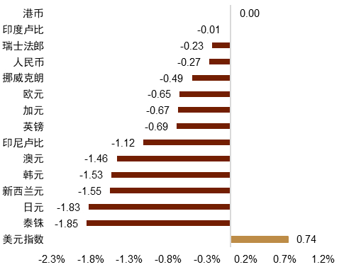 图表1:上周主要货币变化率(%)