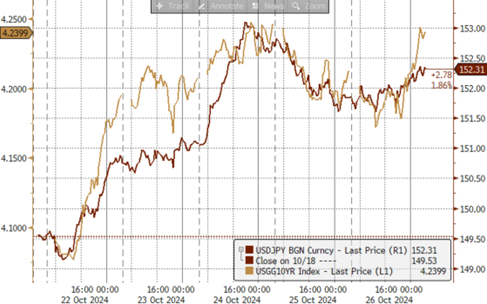 ► 上周(10/21-10/25):特朗普交易+日本政治不确定性=日元明显走弱