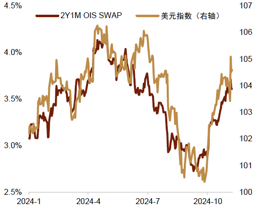 图表3:美元指数 vs. 2Y1M OIS SWAP