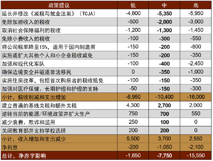 图表8:特朗普的竞选计划及其可能带来的财政影响