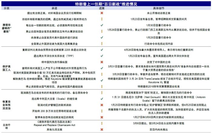 图表:特朗普上一任期“百日新政”完成情况