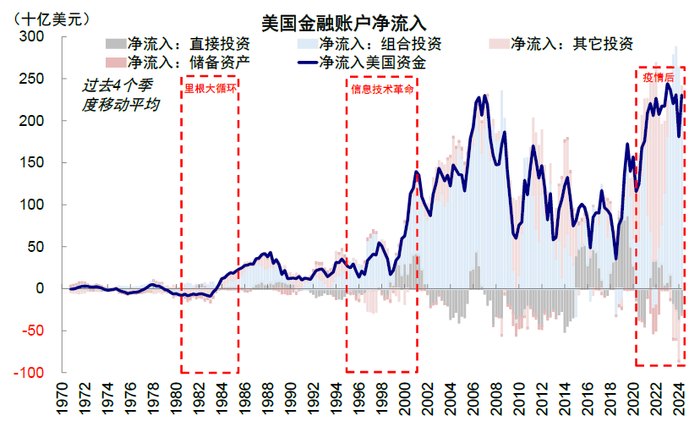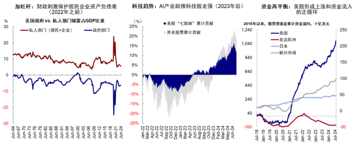 图表:大财政、科技以及全球资金再平衡,是美国经济和美股表现强劲的三个“宏观支柱”