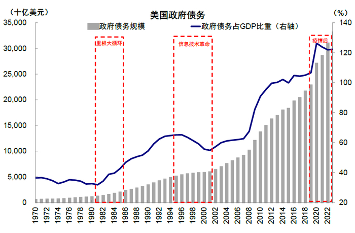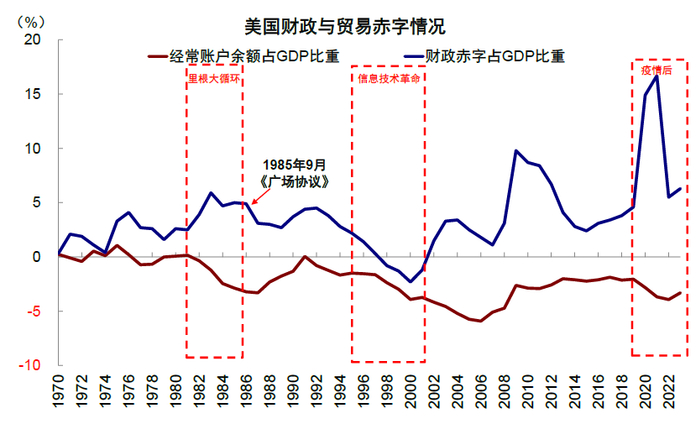 图表:里根大循环期间财政、贸易双赤字扩大