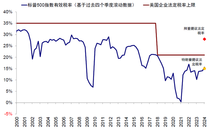 ► 对内减税:方向较为确定。特朗普主张延长个税减税的期限,甚至推动税改法案永久化,并将企业所得税税率从 21%进一步降低至15%。媒体预测财长人选贝森特(Bessent)对减税政策表示支持,在Financial Times的采访中称[7]减税政策将提振经济增长且并不一定会带来通胀。