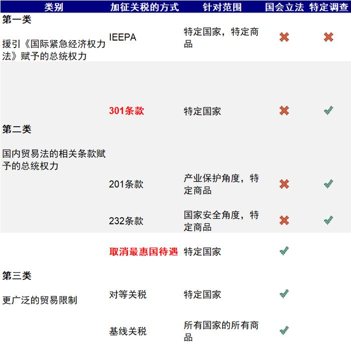 图表:加征关税的方式按照实施程序和所需时长可以分为三类