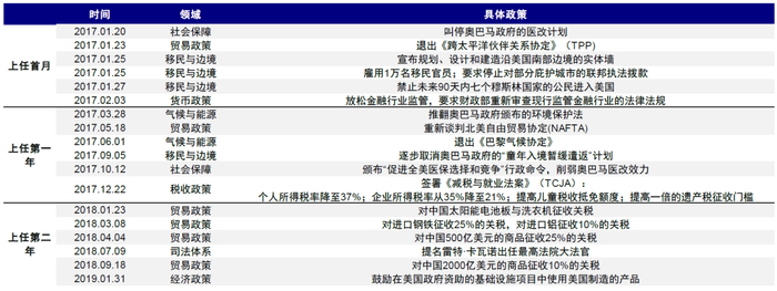 图表:特朗普上任首月、第一年和第二年的政策推进顺序
