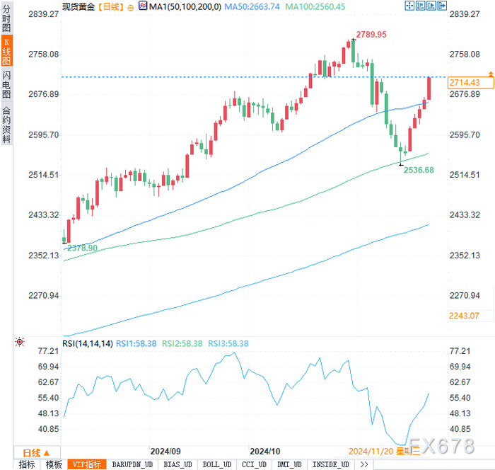 本周,现货黄金价格成功突破了2670美元的关键阻力位,价格稳固站上2700美元,可能为测试2750美元甚至2790美元打开空间。