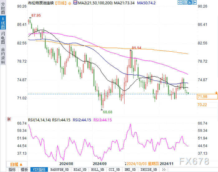 汇通财经APP讯——周二(11月28日),布伦特原油连续合约交投于72.03美元/桶,日内下跌0.4%;美原油(WTI)连续合约报68.50美元/桶,跌幅0.32%。市场情绪整体偏弱,主要受到美国汽油库存意外增加以及需求放缓的拖累。同时,投资者的关注点逐渐转向即将在本周末召开的OPEC+会议,预计会议结果可能为油价提供新的指引。