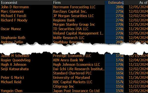 从分布来看,分析师对11月非农的预估范围从15万人至28.4万人不等。