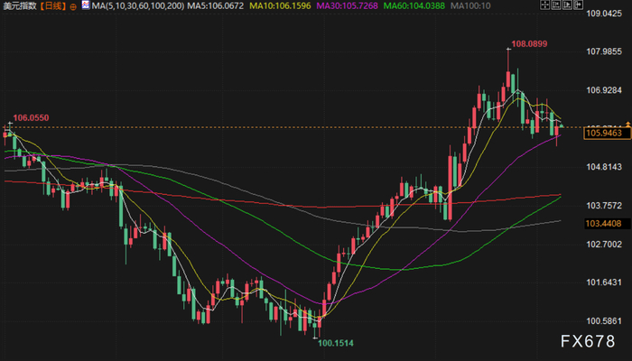 密西根大学 12 月调查显示,消费者信心上升幅度超过预期,同时一年期通胀预期从上月的 2.6% 升至 2.9%,美元应声收窄跌幅。午后交易中,美元指数 攀升 0.3%,至 106 ,此前一个交易日曾跌至三周最低,美元兑瑞郎上涨0.1%,报 0.8786 瑞郎。