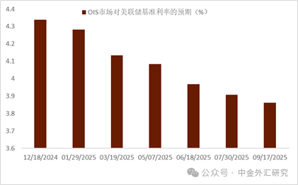 次日公布的11月PPI增速意外走高:PPI同比3%,为2023年2月以来的最大涨幅,大超市场预期和前值的2.6%。核心PPI同比录得3.4%,同样超过市场预期的3.2%和前值的3.1%。PPI环比0.4%,这也是今年6月以来的最大涨幅,前值也从0.2%上修为0.3%。分项看,商品价格环比上涨了0.7%,创下今年2月以来的最大涨幅。其中,食品价格贡献了超过80%的涨幅,整体服务成本小幅上涨0.2%(图表7)。劳动力市场方面,美国12月7日当周首次申请失业救济人数录得24.2万人,这也是最近2个月来的最高水平,高于市场预期的22万人,和前值的22.4万人。而连续申请失业金人数增加了15000人,经季节性调整后达到188.6万人,依旧徘徊在2021年11月以来的最高水平附近。市场在上周经济数据过后对于美联储12月降息的预期有所上行,目前OIS市场完全预计了美联储在12月再次降息25个基点,但近期通胀的上涨使得市场对明年6月之前的降息总量的预期下降至55个基点左右(图表8)。在此背景下,美债利率上周连续走高,而美元也获得支撑。