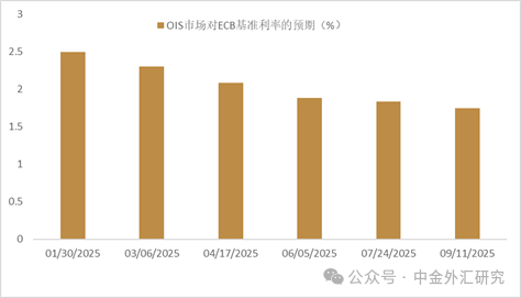 ECB鸽派降息压制欧元上周欧央行如期再次降息25基点,并且下调经济增速和通胀预期,拉加德在发布会上对经济未来前景表态较为悲观并且承认本次会上讨论了降息50基点的可能性。本次会议过后,市场预计明年年内降息的总量虽然并未出现大幅波动,但对明年1月会议上降息的预期明显上升(市场预计有50%的概率会降息50基点),而2025年10月前依旧仍有120基点左右的降息预期(图表9)。总体看,我们认为欧央行本次会上对通胀和GDP预测的下调以及发布会上相关鸽派的表态可能会继续对欧元形成一定压制。