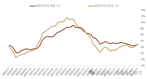 关注美联储12月FOMC会议我们认为本周美联储会符合市场预期降息25基点。但市场可能更多的关注其他增量信息。首先,点阵图传达的最新利率水平。9月FOMC会上的点阵图显示,美联储今年利率预期的中位数位于4.375%,2025年的利率中位数位于3.375%,如果本次会议上美联储对明年的利率中位数预期有所提高,那么市场可能会对明年降息的预期有所降低(目前市场对明年10月前的降息预期只有70基点)。其次,经济增长和通胀预测方面,美联储在9月的FOMC会议上小幅下调今年GDP增速预期至2.0%,PCE和核心PCE通胀预期小幅下调至2.3%和2.6%,但同时大幅上调今年和明年的失业率预期至4.4%。考虑到近期通胀数据的走强以及就业市场的降温,美联储12月会议上对明年通胀的预期尤其关键,如果其对PCE通胀预测有所抬高或者上修失业率的预期,那么市场可能会下调对明年美联储降息的预期。最后发布会上鲍威尔的表态同样较为关键。考虑到近期美联储多位官员不急于降息的表态[2],如果美联储本次会议决定降息25基点但再次强调 FOMC未来不会急于求成,将循序渐进的调整货币政策立场,那么市场可能会预期明年一月会议上按兵不动的可能性。