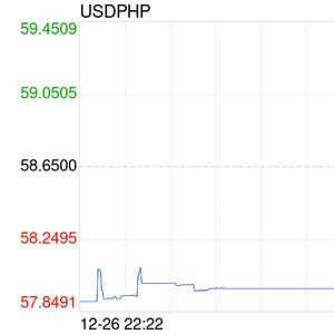 12月27日 美元兑菲律宾比索跌破57.9790 折算100菲律宾比索汇率兑12.5400人民币