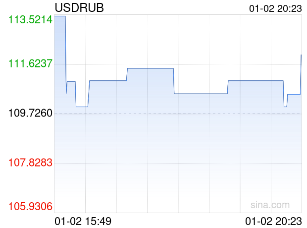 01月02日 美元兑俄罗斯卢布突破112.0000 折算100俄罗斯卢布汇率兑6.5260人民币