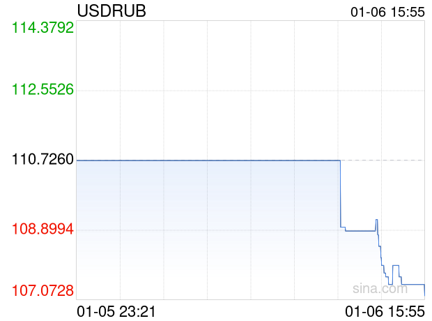 01月06日 美元兑俄罗斯卢布跌破107.1800 折算100俄罗斯卢布汇率兑6.7680人民币