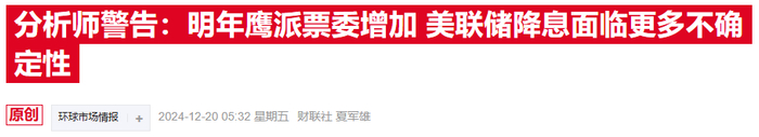 美联储新晋票委柯林斯发声:2025年的降息幅度确实会少一些