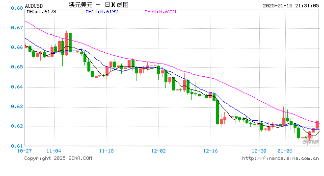 新浪外汇消息2025年01月15日,截至21时30分,外汇市场上澳元兑美元汇率突破1澳元兑换0.6229美元。涨幅为0.6040%
