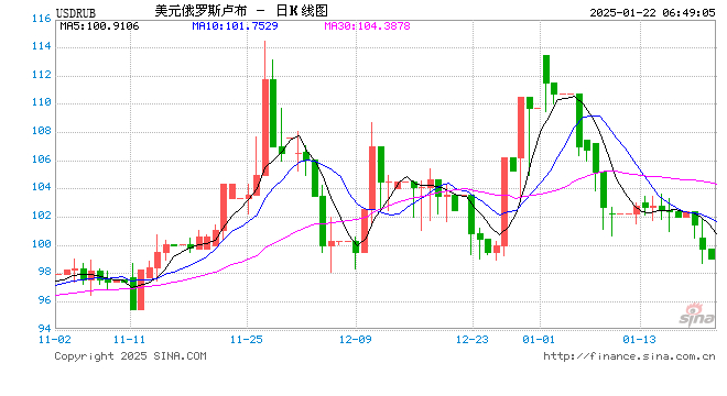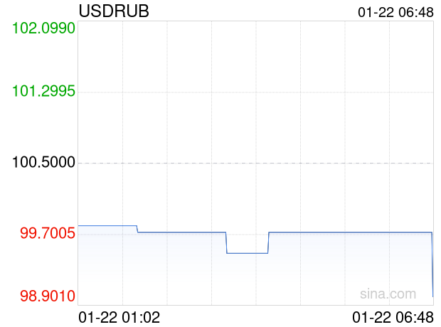 01月22日 美元兑俄罗斯卢布跌破99.0000 折算100俄罗斯卢布汇率兑7.2390人民币