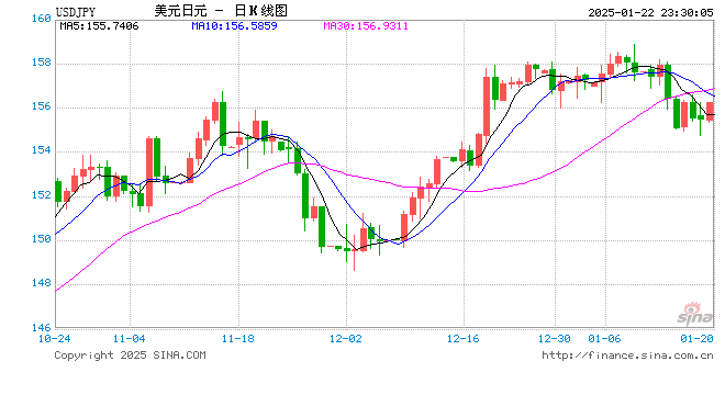 01月22日 美元兑日元突破156.2590 折算100日元汇率兑4.6480人民币
