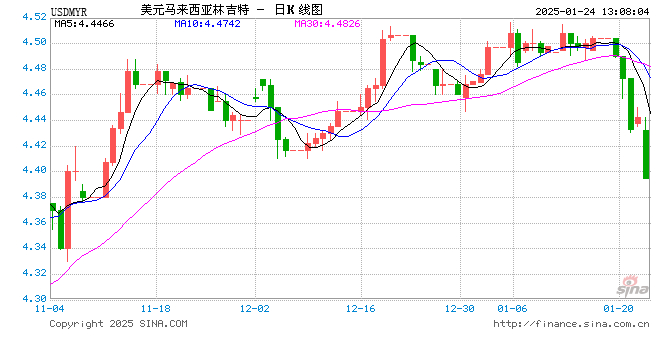 01月24日 美元兑马来西亚林吉特跌破4.3950 折算100马来西亚林吉特汇率兑164.5300人民币
