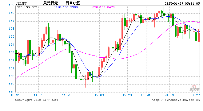 01月29日 美元兑日元突破155.5080 折算100日元汇率兑4.6530人民币
