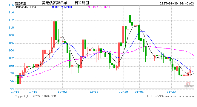 01月30日 美元兑俄罗斯卢布突破99.0000 折算100俄罗斯卢布汇率兑7.2740人民币