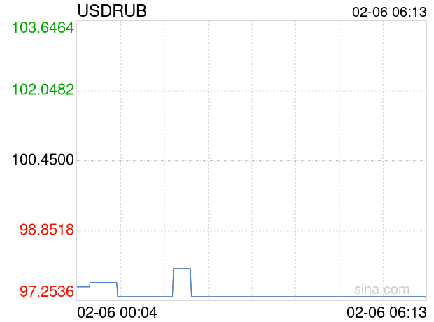 02月06日 美元兑俄罗斯卢布跌破97.3510 折算100俄罗斯卢布汇率兑7.4180人民币