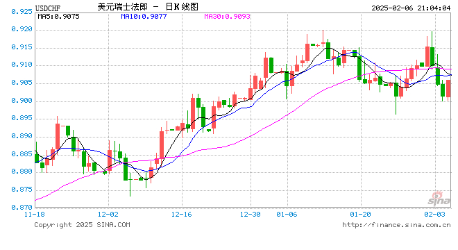 02月06日 美元兑瑞士法郎突破0.9059 折算100瑞士法郎汇率兑804.6400人民币