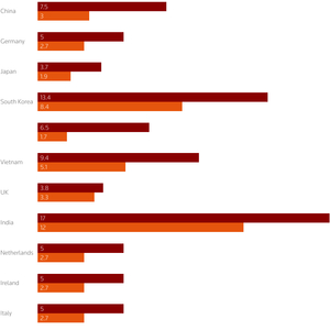 除了已经加征关税的中国外,根据纳瓦罗对“2025项目”的分析,美国最优先考虑的国家中包括了印度。次重要区域的贸易伙伴是赤字极高的欧盟,以及关税差异特别大的泰国和越南。第三级目标则将是日本和马来西亚。