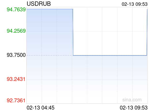 02月13日 美元兑俄罗斯卢布突破94.7260 折算100俄罗斯卢布汇率兑7.6640人民币