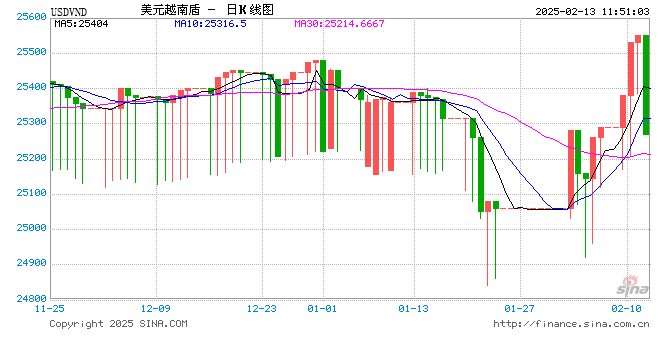 02月13日 美元兑越南盾跌破25270.0000 折算100越南盾汇率兑0.0286人民币