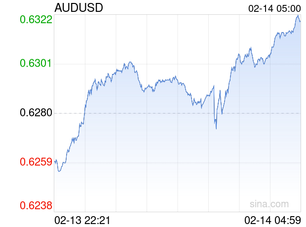 02月14日 澳元兑美元突破0.6319 折算100澳元汇率兑459.5600人民币