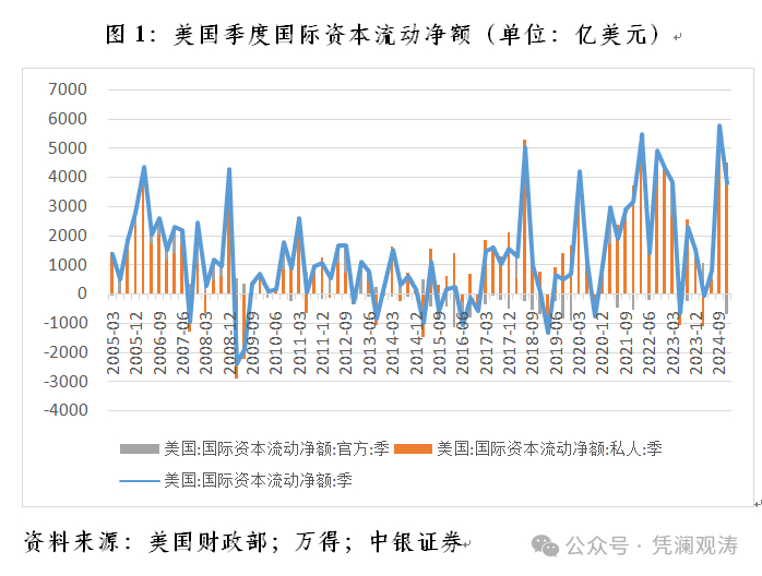 日前,美国财政部发布了最新国际资本流动(TIC)数据,中国国家外汇管理局发布了2024年第四季度和2024年国际收支平衡表(BOP)初步数据。统计数据显示,2024年,美联储9月起终于开启本轮降息周期,但全年美国国际资本净流入再度过万亿,全球美元荒卷土重来;中国的跨境资本流动尤其是短期资本流动,继续处于强美元周期的溢出影响之下。