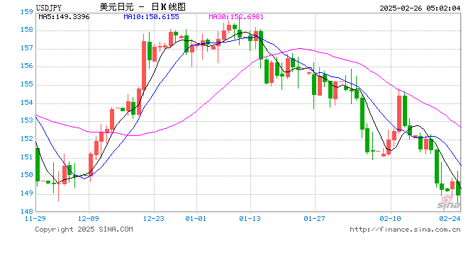 新浪外汇消息2025年02月26日,截至05时01分,外汇市场上美元兑日元汇率跌破1美元兑换148.9400日元。跌幅为-0.5063%