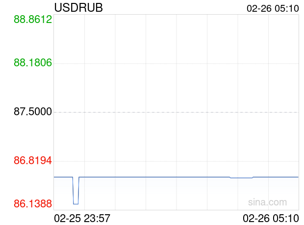 02月26日 美元兑俄罗斯卢布跌破86.6010 折算100俄罗斯卢布汇率兑8.3210人民币