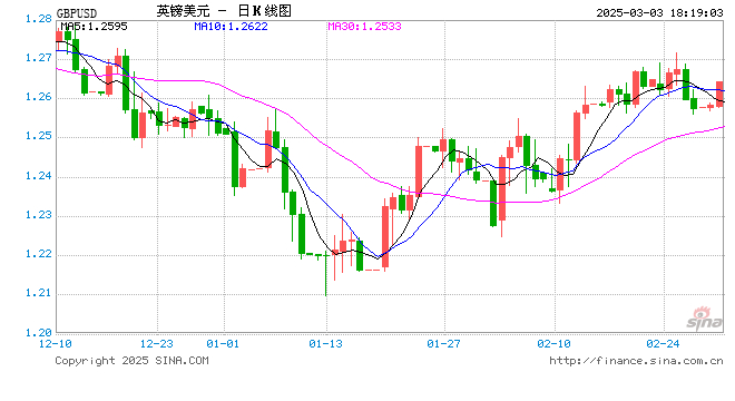 03月03日 英镑兑美元突破1.2640 折算100英镑汇率兑921.3100人民币