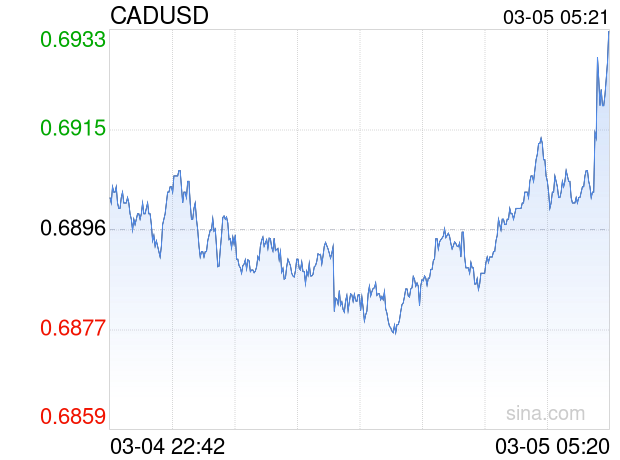 03月05日 加元兑美元突破0.6933 折算100加元汇率兑500.4700人民币