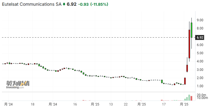 受这些消息影响,EutelSat连续三天大涨,但周四有所回落。