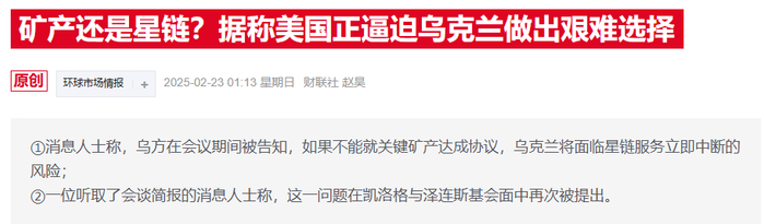 先前有消息称,特朗普政府为了施压乌克兰交出关键矿产资源开采权,威胁要切断对乌克兰的星链服务。