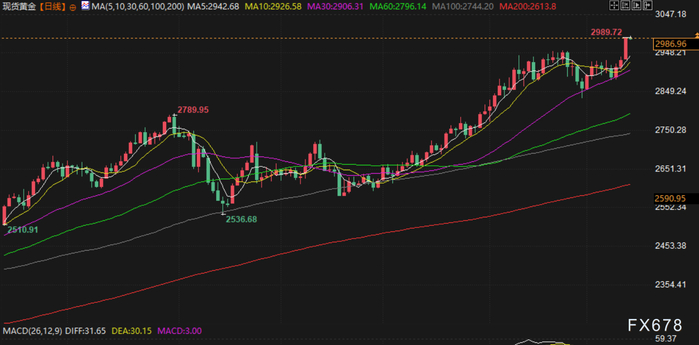 在2024年稳健上涨27%之后,今年迄今为止金价已上涨近14%。美国期金收高1.5%,报2,991.3美元。