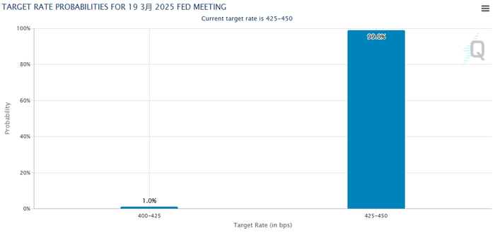 目前,外界普遍预计美联储官员今晚将继续把基准利率维持在4.25%-4.5%区间内,芝商所的美联储观察工具显示这一概率已高达99%。