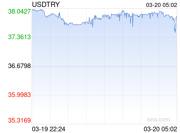03月20日 美元兑土耳其里拉突破37.8730 折算100土耳其里拉汇率兑19.0848人民币