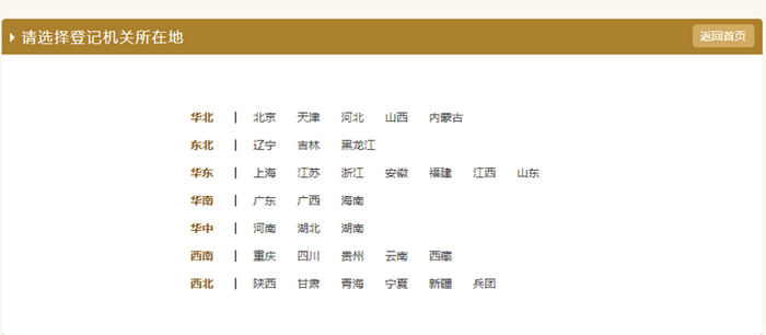 (2)选择登记机关所在地;