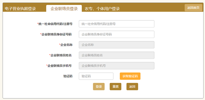 (3)选择通过“电子营业执照登录”或“企业联络员登录”;