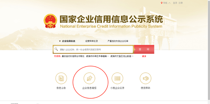 (1)登录“国家企业信用信息公示系统,点击“企业信息填报”;