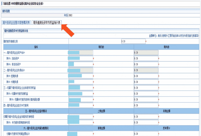 ①需填报“境外投资企业基本信息情况表”和“境外直接投资中方权益统计表”两张表格;