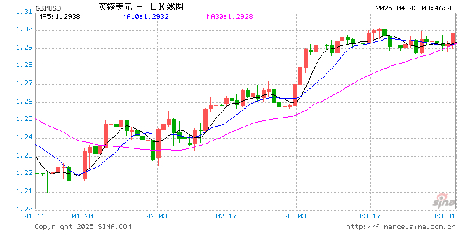 04月03日 英镑兑美元突破1.2986 折算100英镑汇率兑943.2100人民币