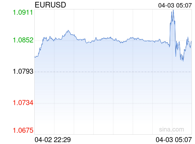 新浪外汇消息2025年04月03日,截至05时07分,外汇市场上欧元兑美元汇率突破1欧元兑换1.0850美元。涨幅为0.5309%